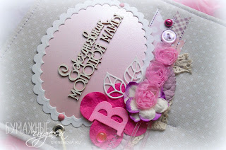 Этот дневник в нежной серо-розовой гамме, с фиолетовыми островками. Декор использовала такой же как на этом дневничке, только тот для мальчика. И буква В здесь означает Варвара)
